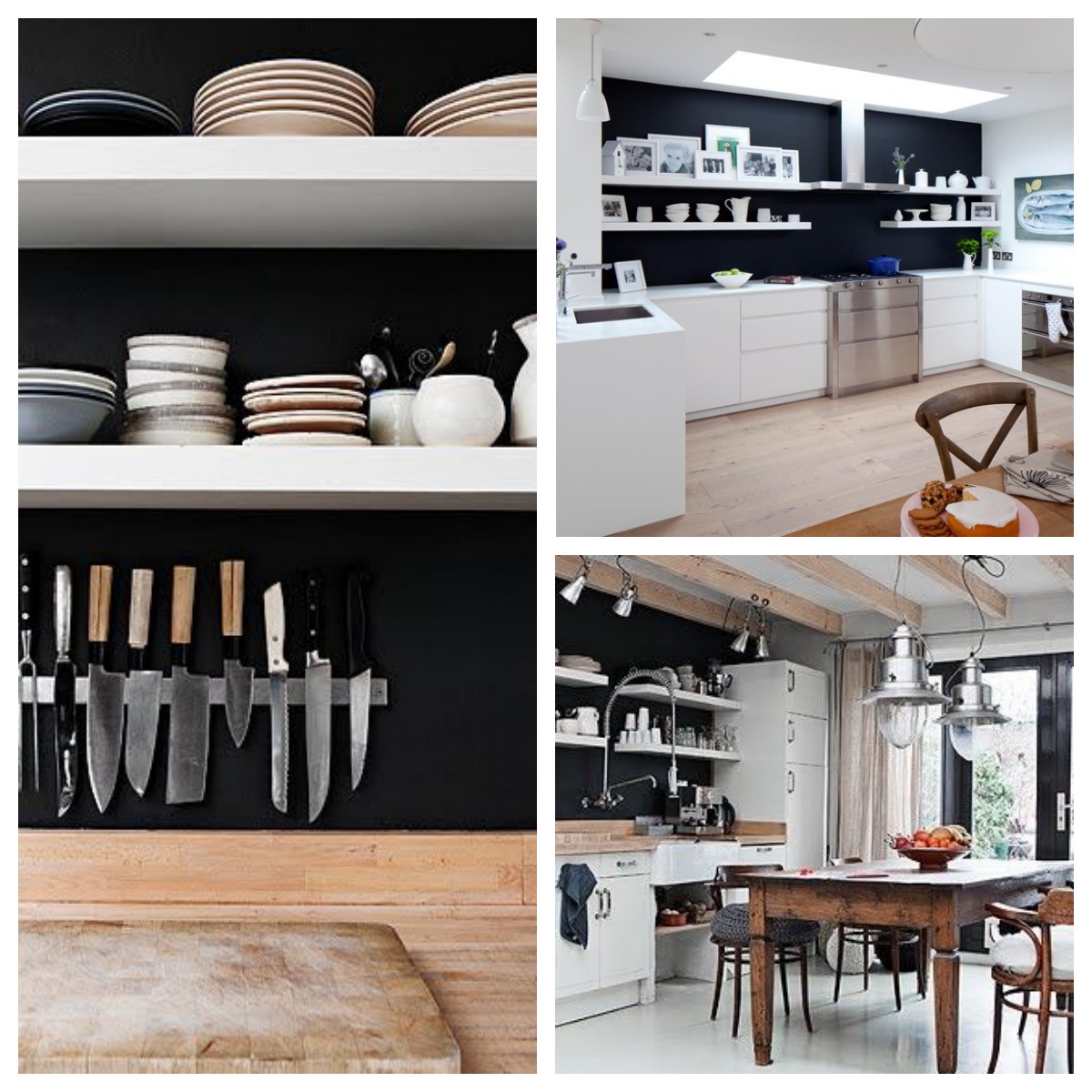 The open shelving is a must have for me, it seems to open up the room and provides easy access for the essentials. A magnetic knife rack is a must have in my dream kitchen too.